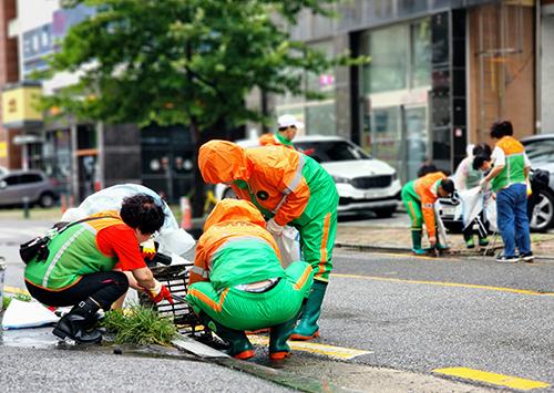 각 동과 더불어 자율방재단, 통장단 등 1000여 명이 참여해 빗물받이에 쌓인 담배꽁초, 나뭇가지 등을 제거했다.