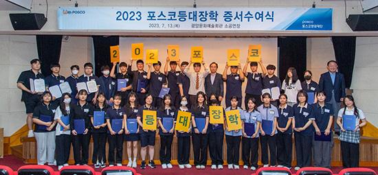 포스코등대장학사업은 2020년 코로나19로 힘든 지역사회에 힘을 보태고자 ‘코로나 극복 특별장학사업’으로 시작해 지난해부터 지역 고등학생들을 위한 상설 장학사업으로 새출발했다. 특히 올해는 코로나19가 종식됨에 따라 제정 이후 처음으로 모든 장학생들이 한 자리에 모이는 증서수여식을 개최했다.