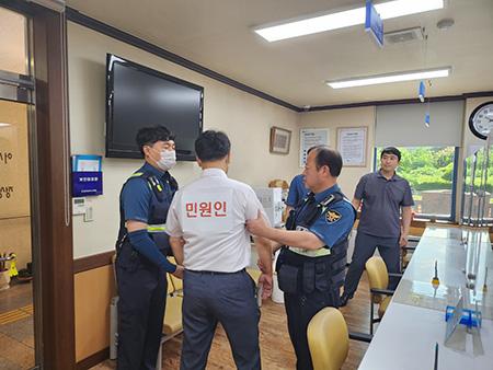 이에 민원실 공무원들은 침착하게 매뉴얼에 따라 대처했다. 웨어러블 캠으로 녹화하고, 비상벨을 눌러 경찰 출동을 요청했다. 그와 함께 다른 민원인들을 안심시키며 안전한 장소로 대피시켰다. 이어 3분 뒤 출동한 경찰관에 의해 폭언·폭행 민원인이 연행되며 소란은 일단락됐다.