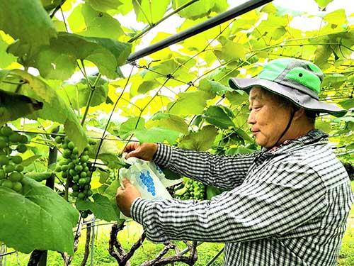 전남 완도군 군외면 해안가에 자리한 남선리에서 유기농 포도를 재배하는 김준환씨가 7월 제철을 맞아 포도를 수확하고 있다. /전남도 제공