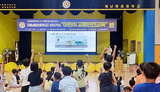이날 행사는 해남동초등학교 2학년 180여 명의 어린이들을 상대로 전남교통연수원 박선영 강사가 나서 특히, 등하교길 어린이 교통안전에 대한 문답식 강의를 통해 어린이들이 공감하는 교통안전에 대한 자세한 설명을 진행했다.
