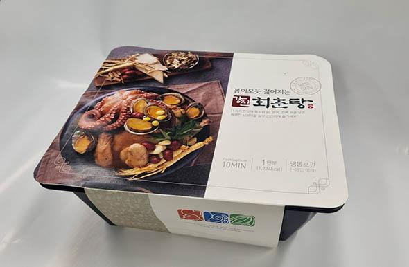 1인용으로 포장돼 1만5000원에 판매한다. 진하게 우려낸 육수와 닭고기, 문어, 전복, 수삼, 대추 등 건더기, 녹두죽으로 구성돼 있다. \'초록믿음 강진군 직거래지원센터\'에서 온라인으로 구매 가능하다.