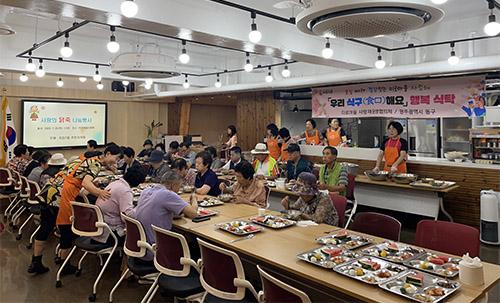 이날 행사는 지산1동 자생단체(미로마을사랑채 운영협의체·지역사회보장협의체 등) 회원들이 준비한 영양 닭죽과 반찬·과일 등을 독거 어르신 등 돌봄 이웃 200여 명을 초대해 대접하며 안부를 살피는 시간을 가졌다.