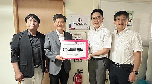 지난 2017년 9월 설립된 ㈜프로앱텍은 단백질, 펩타이드, 항체, 알부민, 합성 약물 등에 이르기까지 다양한 물질들을 위치선택적으로 결합시켜 생체분자 컨쥬게이트를 제조할 수 있는 SelecAllTM 플랫폼 기술을 보유하고 있는 바이오 벤처기업이다.