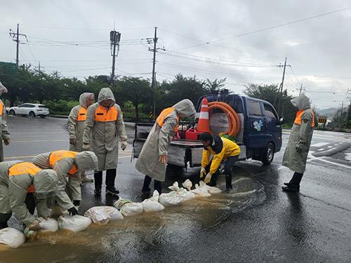 이날 완도소방서 전문의용소방대원 20여 명은 배수로 물넘침, 산사태 우려 지역 등을 찾아가 모래주머니 임시제방 설치, 배수로 토사·쓰레기 제거, 침수지역 배수 지원을 하는 등 연일 계속되는 기록적인 집중호우에 완도군민들의 피해를 막고자 휴일을 반납하고 구슬땀을 흘렸다.