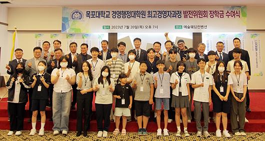 국립목포대학교 경영행정대학원 최고경영자과정 발전위원회(이하 목경최 발전위원회)는 지난 20일 목포예술웨딩컨벤션에서 ‘제1회 지역인재육성을 위한 장학금 전달식’을 열어 목포·무안 초등학생 2명, 중학생 5명, 고등학생 11명, 대학생 2명 총 20명에게 장학증서와 장학금을 수여했다고 밝혔다.
