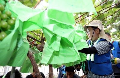 이재명 더불어민주당 대표가 25일 오전 충남 부여군 부여읍 정동리 침수지역 비닐하우스에서 수해복구 지원 활동을 하고 있다.