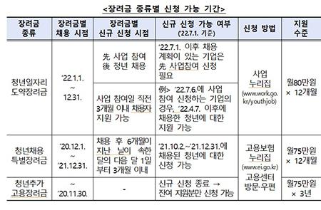조기지급 신청을 희망하는 기업은 누리집을 통해 참여신청·승인, 채용명단 통보, 지원금 신청 절차를 거치면 된다.