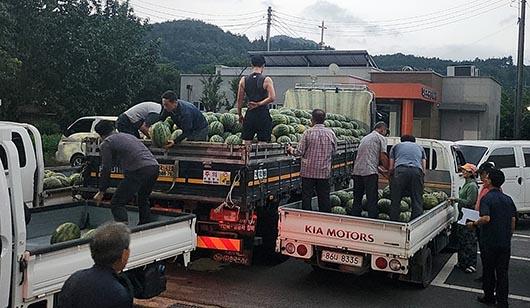 수박 1400통은 다도면 이장단을 통해 25개 전체 마을로 배달됐다.