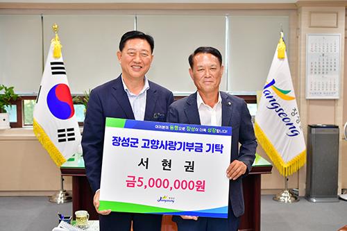 장성군 출향 기업인 서현권 대표가 고향사랑기부금 개인 최고액인 500만 원을 기부했다.