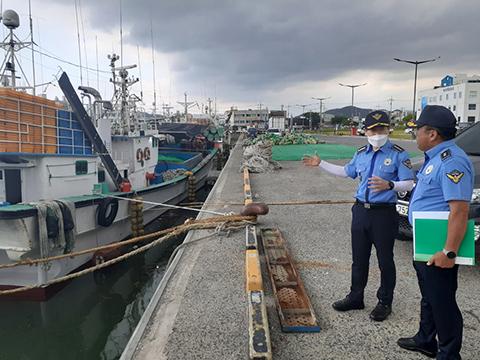 목포해양경찰서장은 7일 동명항, 남항, 대불(용당)부두, 조선소 등 관내 항포구 및 주요시설을 차례로 방문, 선박 피항지 및 피항 선박 현황 확인, 태풍·집중호우 대비 위험구역 및 항포구 취약개소 파악과 함께 구조세력 즉응태세 유지 등을 당부했다. /목포해양경찰서 제공