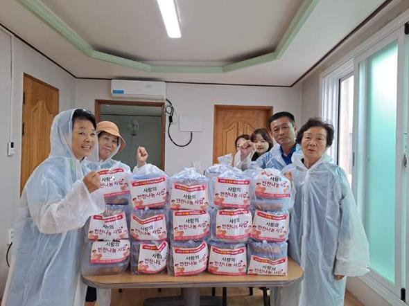 새마을부녀회의‘사랑의 반찬나눔’사업은 주민참여예산 지역특화사업으로 연 4회 추진하며, 식사 해결이 어렵고 영양불균형이 우려되는 독거노인 50세대에 직접 요리한 밑반찬(3종류) 전달과 안부살피기를 통해 이웃사랑 실천하고 있다.