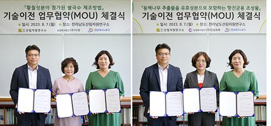 기술이전을 받은 두 기관은 “전남의 산림자원을 활용함으로써 해외 수출 판로 개척을 통한 전남의 산림 소재 홍보와 일자리 창출을 통한 지역 경제 활성화에 기여하겠다”고 밝혔다.