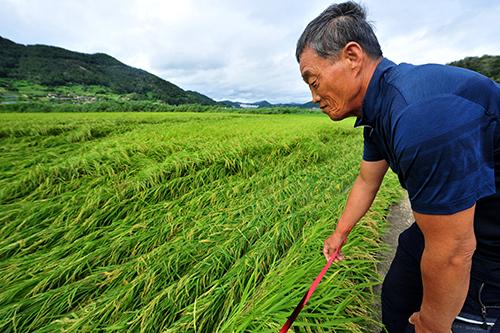 그러면서 \"일정 면적 수매가의 최대 60%까지 보전해주던 보험금 규모도 갈수록 줄어들고 있는 와중에 이같은 태풍 피해가 매년 반복되지 않을까 걱정된다\"며 \"벼를 세워도 알곡에 물이 들어찬 탓에 얼마나 수매될 수 있을지는 장담하기 어렵다\"고 쓴웃음을 지어보였다.