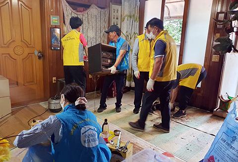 봉사자들은 고장난 냉장고 안 음식물 처리에서부터 전기 수리, 방역소독, 폐가구 수거 등 집안청소와 헤지고 낡은 장판을 교체해 쾌적한 보금자리를 선물했다.