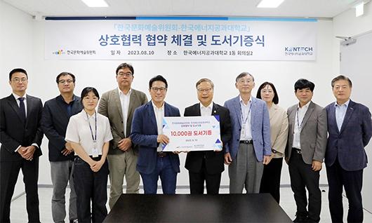 이번 협약을 통해 예술위원회는 한국에너지공과대에 우수 문학도서 1만 여권을 기증했다. 기증된 도서는 예술위원회에서 추진하는 ‘문학나눔 도서보급사업’의 도서 선정을 위한 심의용 도서 1만 권으로, 지난 2018년 이후 출간된 시, 소설, 수필, 평론, 희곡 등 문학분야 신간 도서로 구성됐다. ‘문학나눔 도서보급사업’은 국내에서 발간된 우수문학도서를 선정·보급함으로써 국내 출판시장 활성화, 작가의 안정적 창작환경 마련, 국민의 문학 작품 향유 기회 확대를 목표로 하는 사업이다.