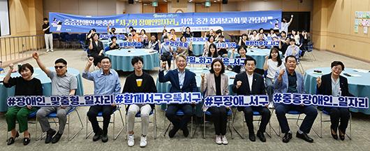 서구는 지난 16일 서구청 들불홀에서 장애인 근로자와 가족, 전담인력 등 50여 명이 참석한 가운데 ‘서구형 장애인 일자리 사업 중간성과 보고회’를 개최했다.