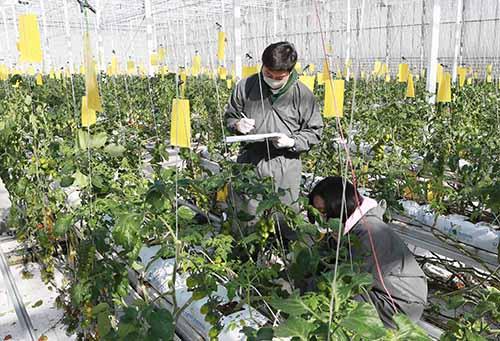 전남농업기술원 빅데이터 조사원들이 토마토 생육 실측 조사를 하고 있다. (사진=전남농기원 제공) 2023.08.21.