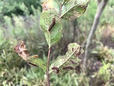 배롱나무 잎 갉아 먹는 맵시혹나방 유충. (사진=전남산림자원연구소 제공)