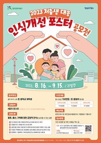 특히 올해 공모는 주민 참여율을 높이기 위해 북구 관내 초·중학교 재학생을 대상으로 가족에 대한 긍정적 이미지를 제고하는 내용의 저출생 대응 인식개선 포스터 분야에 아이디어를 집중 모집한다.