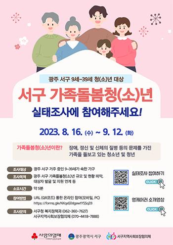 광주시 서구는 가족돌봄 청소년·청년의 현황을 파악하고 체계적인 지원체계를 마련하기 위해 실태조사를 실시한다.