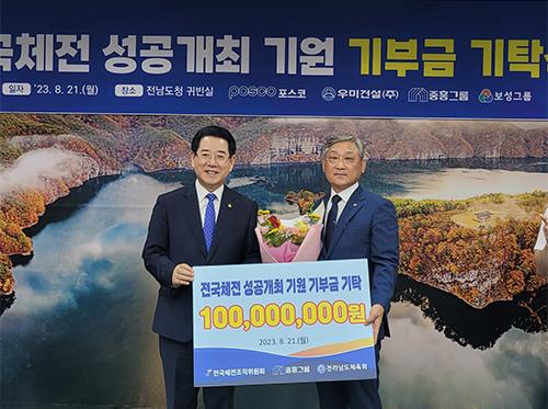 중흥건설·중흥토건은 23일 전남에서 15년 만에 열리는 전국체전과 전국장애인체전의 성공 개최를 위해 전남도체육회에 1억원을 기부했다고 밝혔다.
