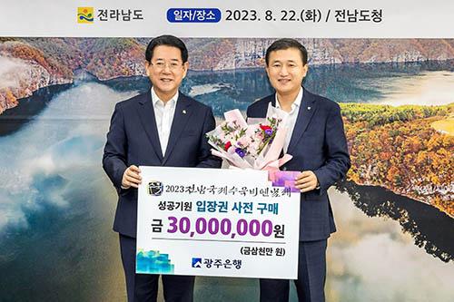 광주은행은 지난 22일 전남도청에서 ‘2023 전남국제수묵비엔날레\' 입장권 구매 약정식을 가졌다고 23일 밝혔다.