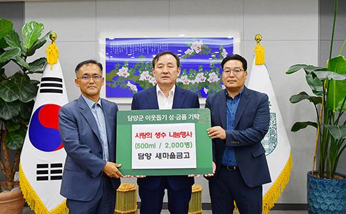 담양군 새마을금고가 지난 22일 여름철 불볕더위에 지친 취약계층을 위해 써달라며 생수(500ml) 2000병을 기탁했다.