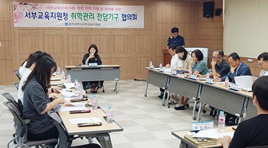 광주서부교육지원청이 28일 구청·경찰서·학교밖청소년지원센터·아동보호전문기관과 함께 ‘2023년도 취학관리 전담기구 협의회’를 개최했다.