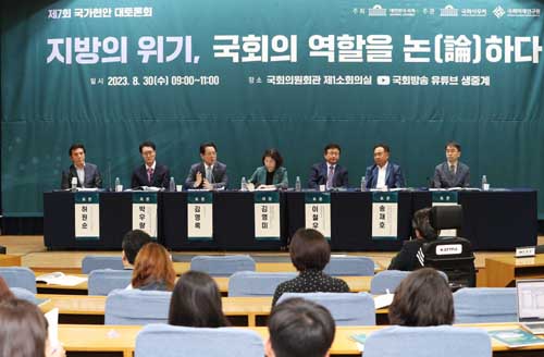 30일 국회에서 열린 ‘제7회 국가현안 대토론회’에 김진표 국회의장, 김교흥 국회행정안전위원장, 이상민 행정안전부장관, 우동기 지방시대위원장, 송재호 국회의원과 지방정부 대표로 김영록 지사와 이철우 경북지사, 각계 전문가들이 함께했다.