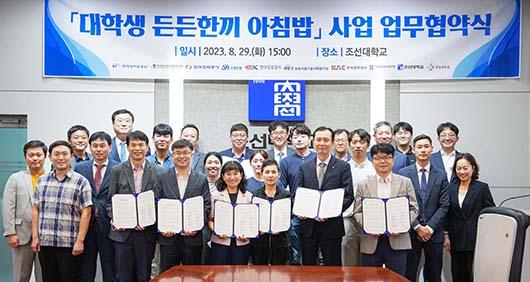 30일 농어촌공사에 따르면 전날 조선대학교에서 나주혁신도시 공공기관과 조선대·초당대 관계자가 참석한 가운데 \'2학기 대학생 든든한끼 아침밥 지원사업\' 업무협약을 체결했다.