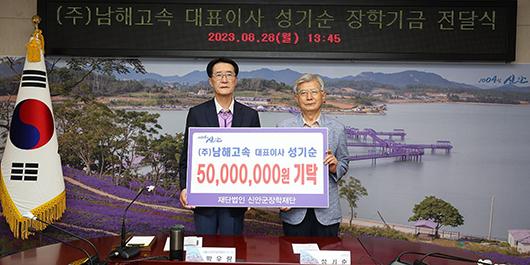 (주)남해고속 성기순 대표이사는 지난 28일 신안군청을 방문해 신안군장학재단에 5000만 원 기탁을 약정했다.