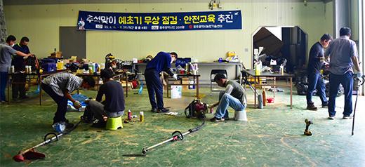 또 예초기를 가지고 센터를 방문하면 교육이 끝난 후 무상 안전점검 서비스를 진행한다. 안전점검은 ▲예초날 상태 확인과 교체 ▲작업봉 결합 여부 ▲예초기 엔진 이상 여부와 연료누유 등을 살펴본다.