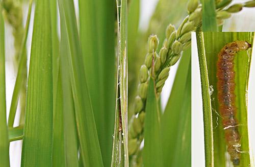중국에서 바람을 타고 날아오는 비래해충 \'벼 혹명나방\' 유충에 의한 피해 모습. /전남농업기술원 제공