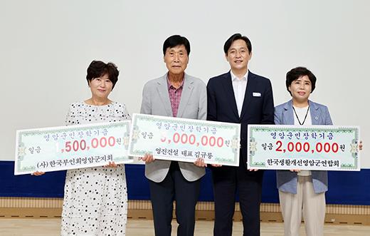 한국생활개선영암군연합회와 (사)한국부인회영암군지회가 지난 1일 영암군청을 찾아 (재)영암군민장학회에 장학기금 200만 원과 150만 원을 각각 기탁했다.