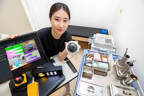 KT 직원이 수술실 CCTV 의무화법 대비를 위한 KT 수술실 CCTV 솔루션 ‘기가아이즈 메디뷰’를 소개하고 있다.