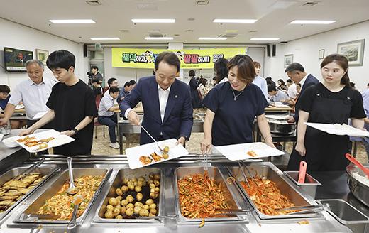이날 동구는 전 직원을 대상으로 ‘채식하고, 계단타고, 팔팔하게!’라는 슬로건을 내걸고 ▲출·퇴근시 계단 이용하기 ▲채식 메뉴로 점심 식단 구성하기 등 기후변화 대응에 따른 공동행동을 실천하며 구성원들의 호응을 이끌어냈다.