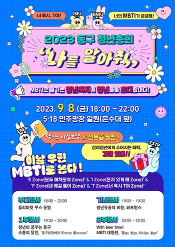 동구 청년참여위원회에서 기획·주최한 청년총회 ‘나를 알아줘’는 MBTI(성격 유형검사)를 접목시켜 스스로를 표현하고 세상과 소통하길 바라는 청년들의 마음을 담아 마련됐다.