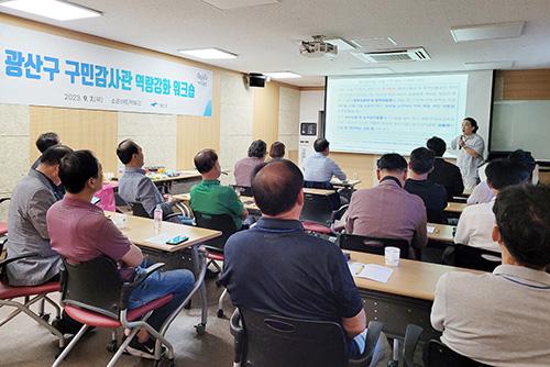 광주 광산구는 7일 소촌아트팩토리에서 제4기 구민감사관을 대상으로 ‘시민을 이롭게 하는 청렴하고 정직한 리더십(지도력)’ 특강을 진행했다.