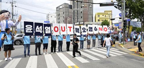 전국 진보당원들은 광주 광산구 도시철도 1호선 송정공원역에서 광산구청 앞 영광통사거리까지 700여 m 도로 양방향 인도에 늘어서서 당 정책 기조·주요 의제가 담긴 현수막을 든 채 시민들에게 인사를 건넸다.