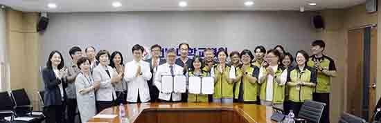 이날 조인식에서 안영근 병원장과 곽경선 부위원장이 합의서에 서명한 후 병원발전을 위한 건전한 노사관계 유지를 다짐했다.
