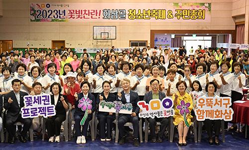 이날 총회는 다양한 연령대의 주민 300여 명이 참석한 가운데 화정3동 BI ‘역사품은 꽃마을’선포를 시작으로 내년도 추진할 마을의제 우선순위 선정, 청소년·주민 문화공연, 마을 B·I 관련 14개의 체험부스&플리마켓 등 주민이 참여하고 즐길 수 있는 다양한 프로그램이 진행됐다.