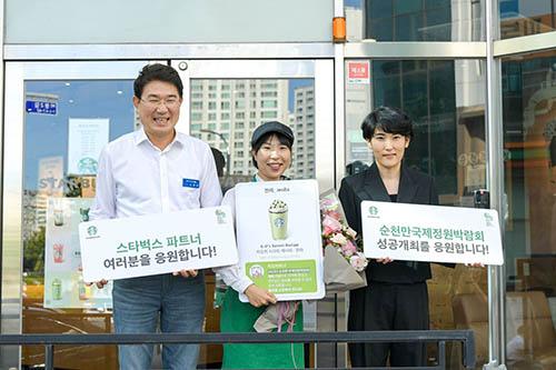 노관규 순천시장이 순천만국가정원에서 영감을 얻어 음료를 개발한 스타벅스 점장을 찾아가 감사를 전했다.