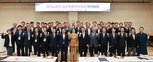 지역창업 생태계 조성 방안, 지역 체감형 중소기업 정책 방안, 지역 혁신기관 간 협업 강화 등 현안에 관한 논의도 이어졌다. 이 장관은 \"중기부는 본부와 지방중소벤처기업청, 소속 공공기관 및 협·단체 등과 핵심미션을 공유, 공동 추진하면서 \'하나로 강력한 원팀 체제를 구축해 왔다\"며 \"중소기업 성장 사다리의 두 축인 테크노파크와 창조경제혁신센터가 쌍두마차가 돼 지역중소기업이 만드는 \'살맛나는 지방시대\'를 만들어 가는 일에 앞장서달라\"고 말했다.