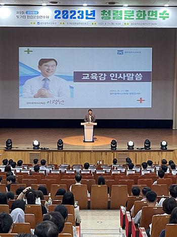 광주시교육청이 11일 광주교육연수원 대강당에서 소속 직원 및 빛가람청렴실천네트워크 청렴 업무 관계자 300여 명을 대상으로 ‘2023년 청렴문화연수’를 열었다.