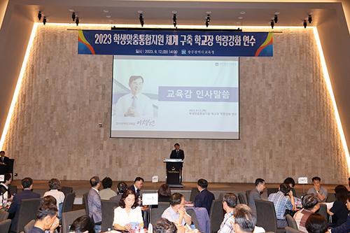 광주시교육청이 12일 학생맞춤통합지원 체계 구축의 원활한 추진을 위해 광주 관내 전체 학교장 대상으로 한 역량강화 연수를 실시했다고 밝혔다.