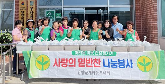 담양군 봉산면 새마을부녀회는 지난 8일 면 노인복지회관에서 결식이 우려되는 50가정에 건강과 영양을 고려한 밑반찬 나눔 봉사활동을 추진했다.
