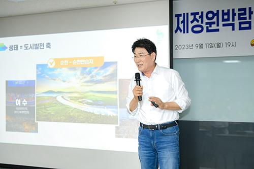 노 시장은 “지역발전을 위한 필요충분조건을 삼합이라 강조”하며 “시장과 공직자, 시민의 삼합이 맞아야 도시는 미래로 갈 수 있으며, 순천시가 애니메이션 특화, 문화콘텐츠 도시이자 명품 정주도시가 되길 기대한다”고 전했다.