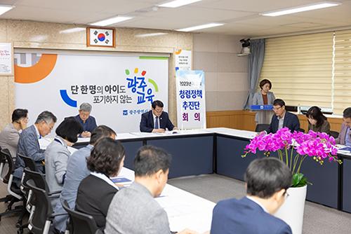 광주시교육청이 13일 시교육청 2층 상황실에서 이정선 교육감을 비롯한 19명의 위원이 참석한 가운데 ‘청렴정책추진단’ 회의를 진행했다고 밝혔다.