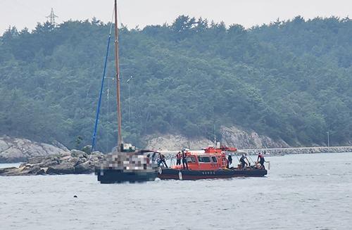 완도해양경찰서는 13일 오전 전남 완도군 사후도 인근 해상에서 7t급 요트 A호가 운항 중 좌초됐다는 신고를 받고 구조 작업을 벌였다. 선원 2명의 건강은 모두 무사하며 요트는 안전지대로 이동됐다.(사진=완도해경 제공) 2023.09.13.